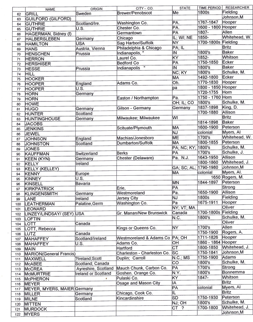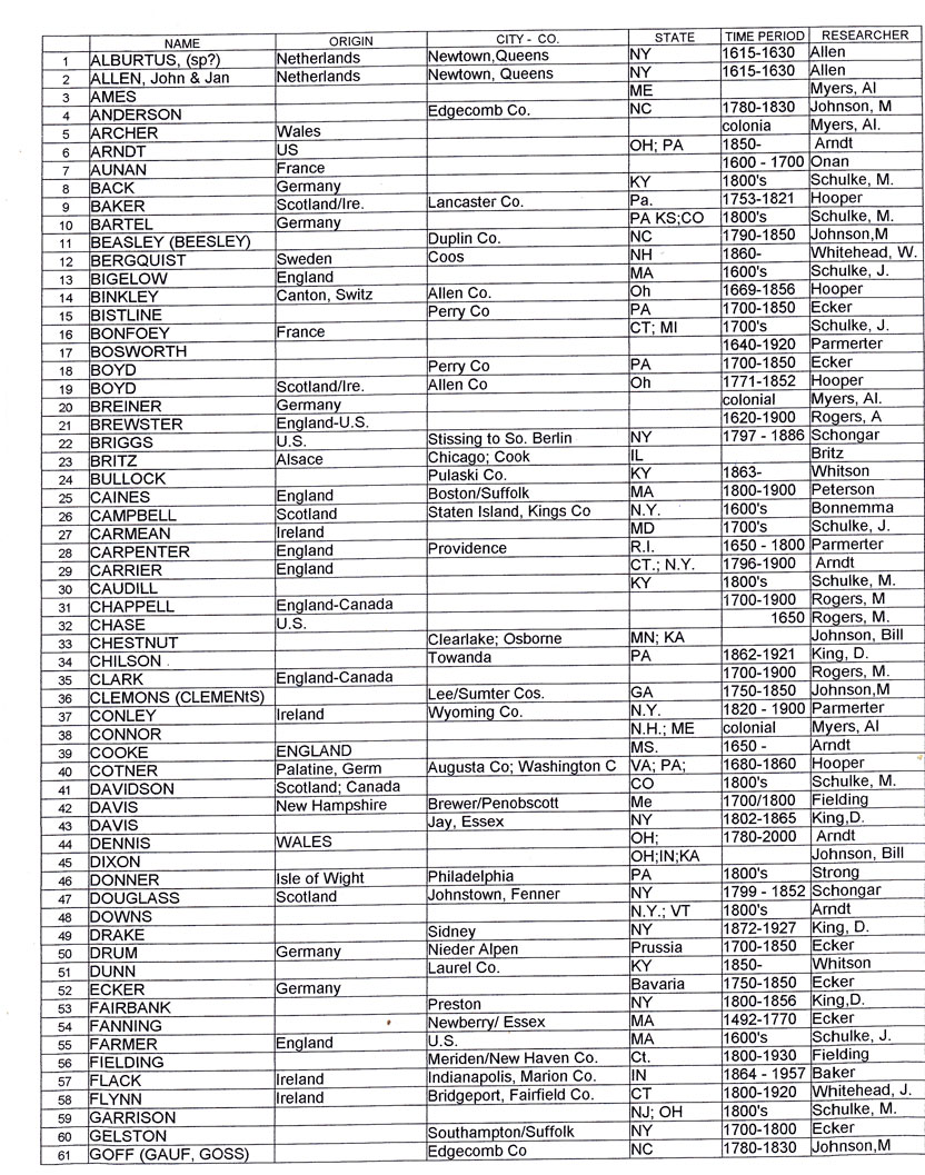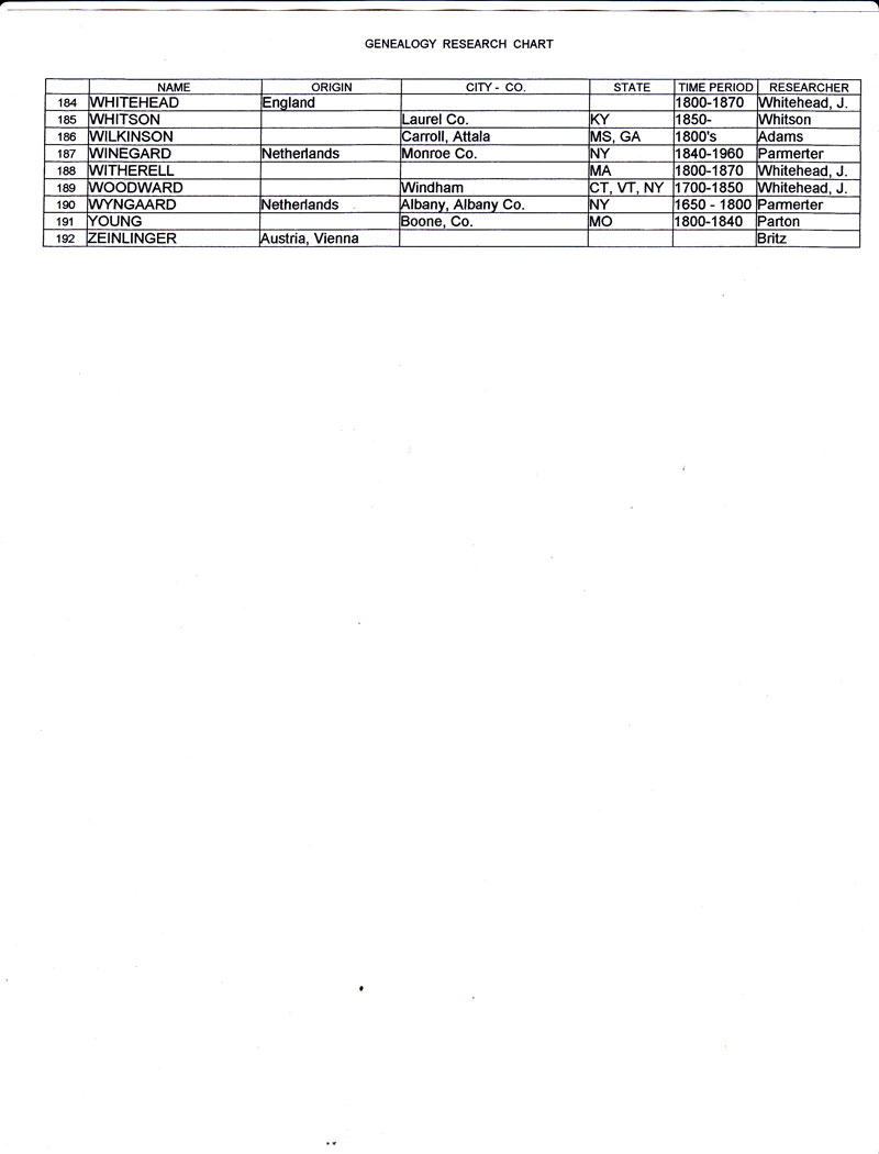 GENEALOGY RESEARCH CHART